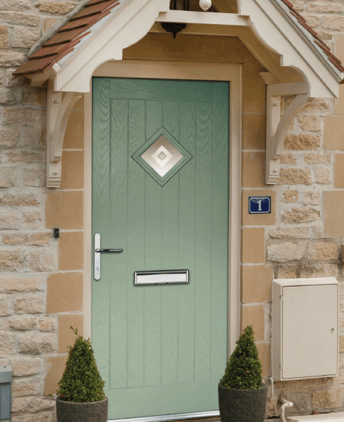 A composite door is made from layered materials including timber, foam and GRP. This gives better strength, insulation and durability than traditional timber doors.